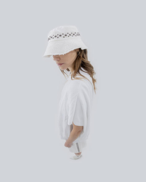 Pantaloncini da calcio abbinati a décolleté a punta geometriche e calzettoni a righe. Un micro-abito in jersey con cappuccio e occhielli completato da calze coordinate e ironici tacchi a blocco chunky. Questi sono solo alcuni degli outfit che ICEBERG ha in serbo per il guardaroba femminile del prossimo anno, in un riuscitissimo mash-up tra sport e club culture.